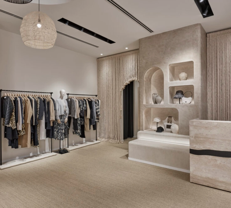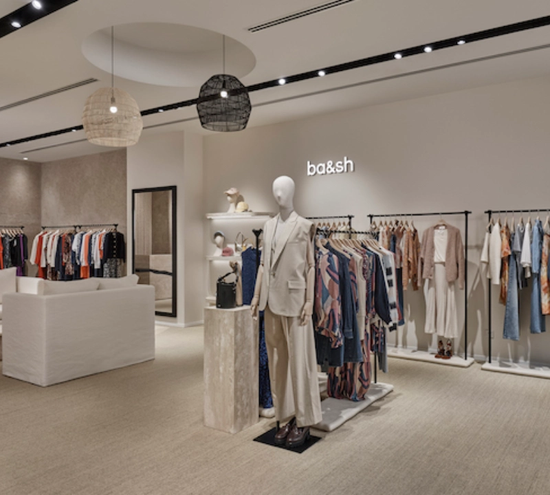 Bespoke joinery and curated lighting accentuate each collection, guiding visitors through an intimate yet fluid layout. Every material and detail was selected to reflect ba&sh’s understated, radiant femininity, delivering a contemplative and refined shopping experience within Singapore’s premier luxury destination.