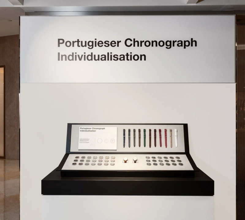 Conceived as both retail environment and interactive showcase, the space marks the debut of IWC Schaffhausen’s Individualisation Service in Southeast Asia. The temporary installation combines display, retail, and interactive zones, allowing clients to customise the Portugieser Chronograph through interchangeable dials, cases, and straps.