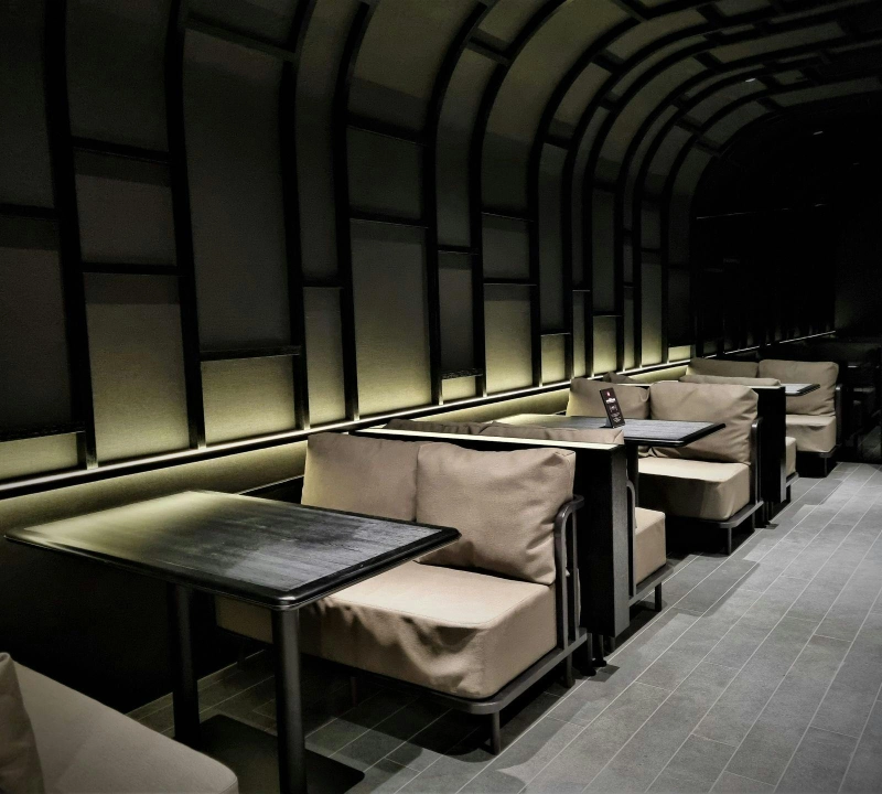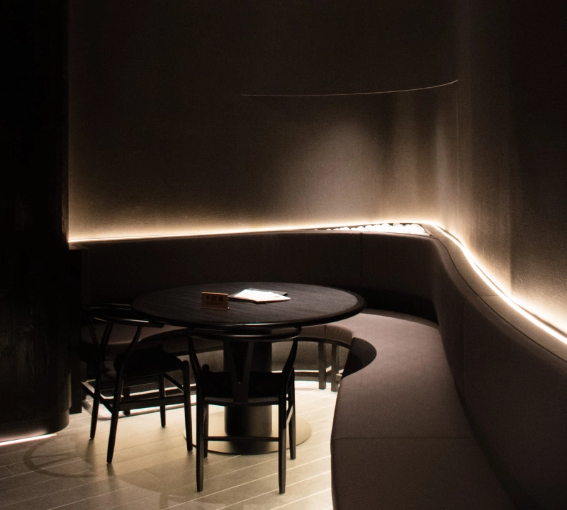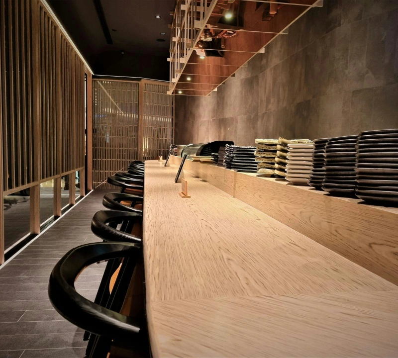 Earthy tones, curved partitions, and artisanal textures converge to deliver an elevated and intimate ambience - an elegant backdrop to honour its culinary precision and sashimi experience.