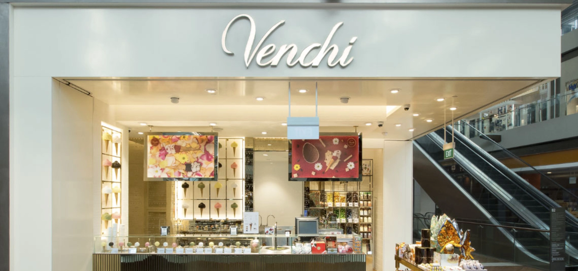 In a bustling mall environment, the boutique embodies Venchi’s commitment to craftsmanship and indulgence, offering visitors a moment of Italian elegance and sensory delight amidst the dynamic retail landscape.