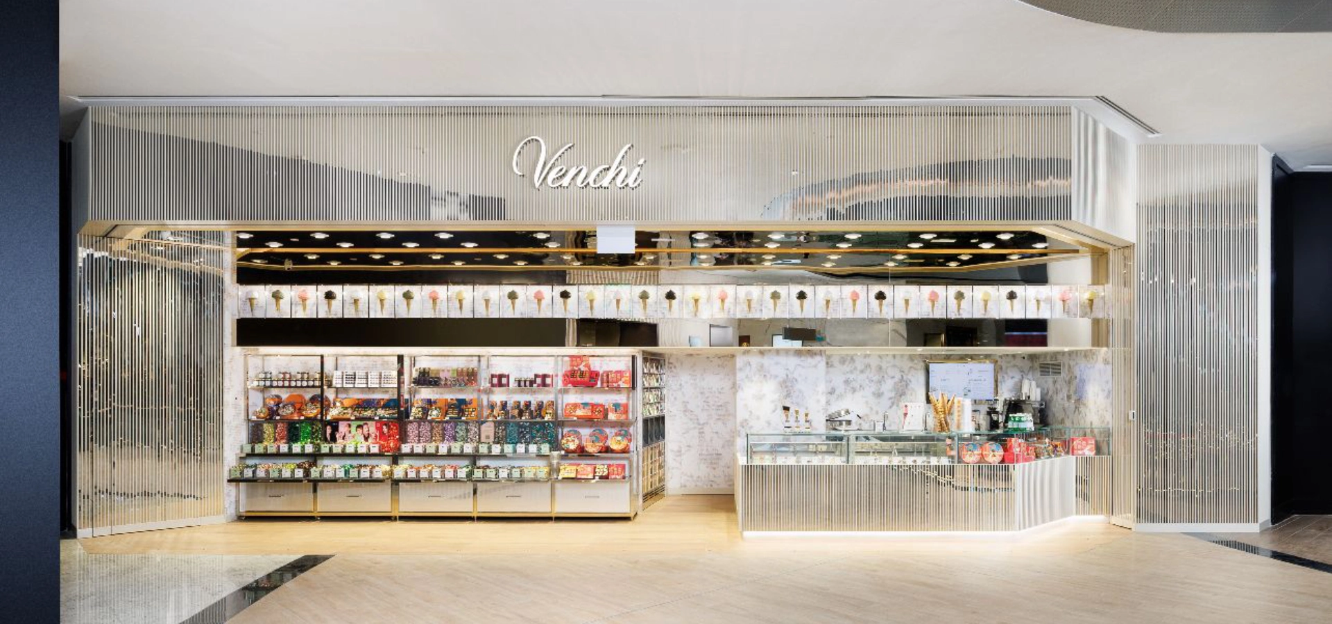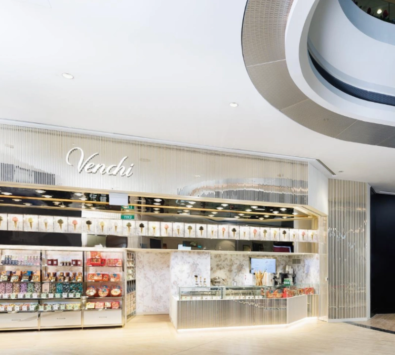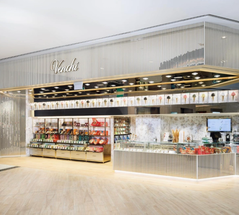 From sculptural signage to refrigerated enclosures and illuminated display cases, every detail reinforces Venchi’s Italian heritage and premium identity. The completed fit-out transforms a compact footprint into a sensorial destination, maximising shopper flow and visibility while elevating product discovery through an immersive café-retail experience.